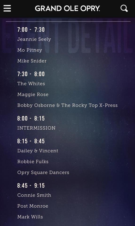 As mentioned in the interview, next day Backstage at the Grand Ole Opry…